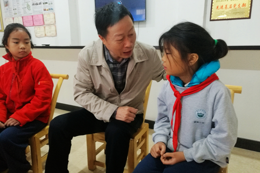 在麻栗场镇中心小学,周其林与结对帮扶的两名小学生亲切面谈,询问了她们的学习情况和生活情况,勉励她们发奋学习,扎实学好每一门功课,争取以后考上一个好大学。