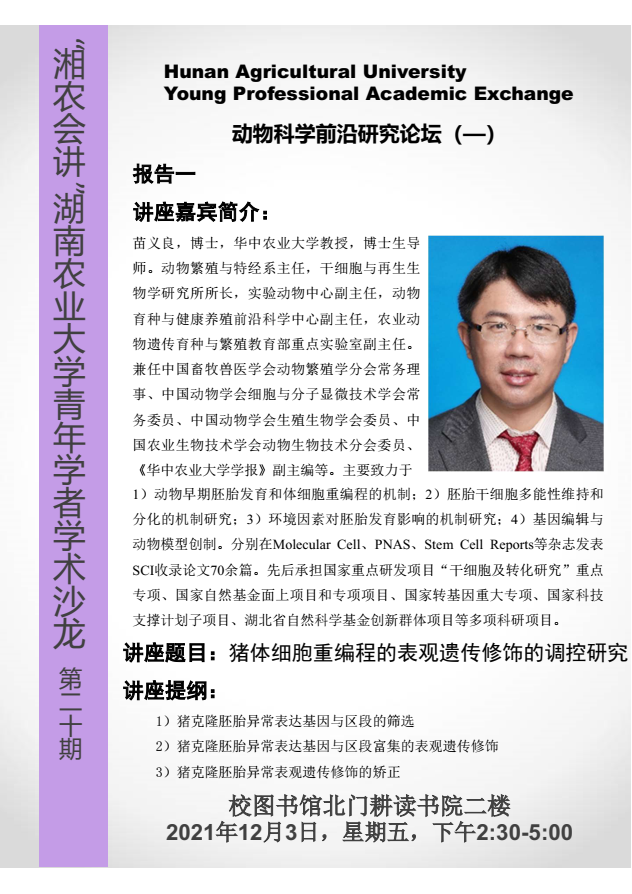 “湘农会讲”湖南农业大学青年学者学术沙龙第二十期报告二