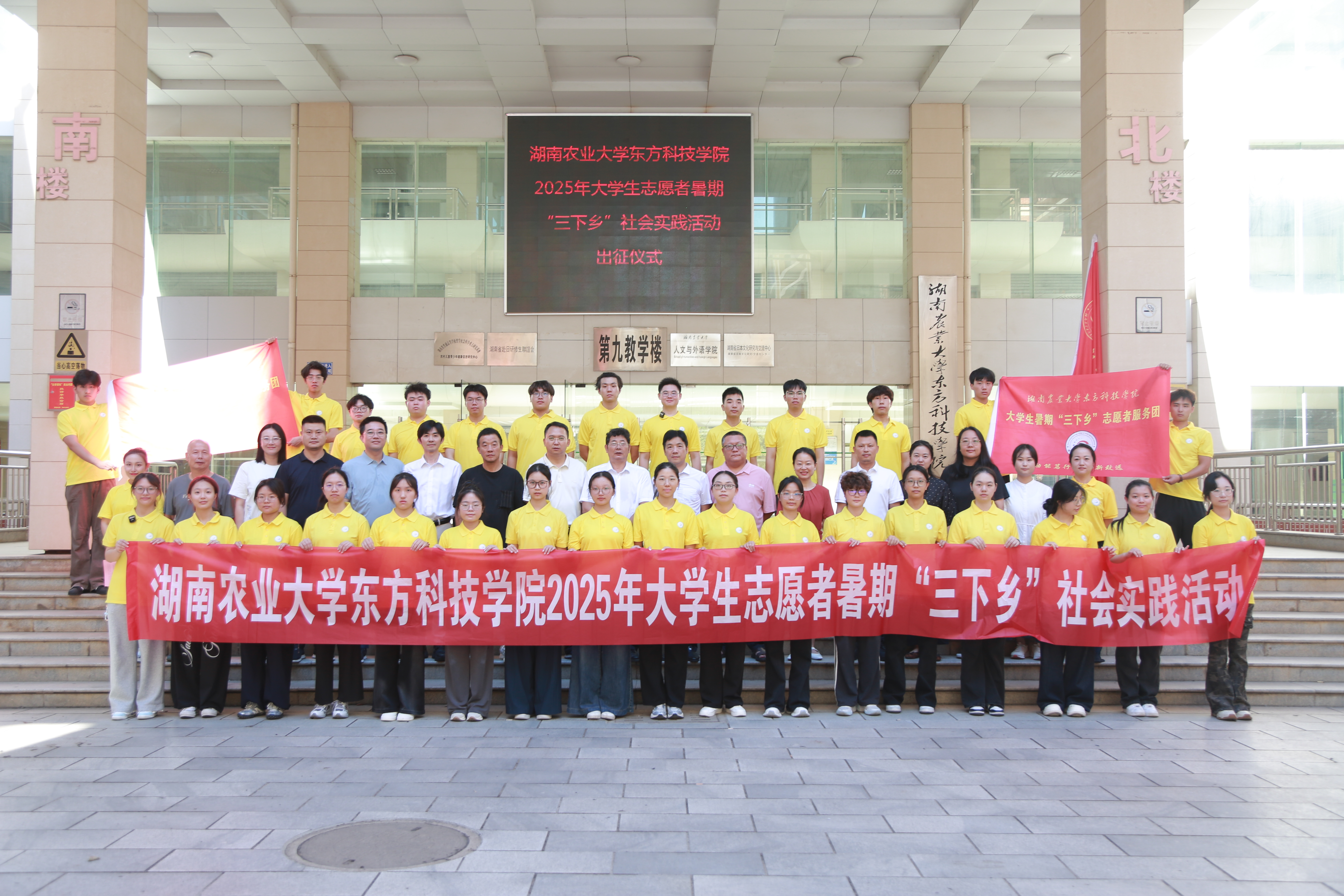 本网讯(通讯员周可盈李滢萱)819上午,学院 2025 年大学生愿者暑期"三下乡"社会实践活动出征仪式在第九教学楼前坪举行。院领导李觅路、肖化柱刘逊、魏勇、刘碧琼、杨曙、周耀出席,学院党政办、学工部、团委负责人以及各学部学工副主任参加。